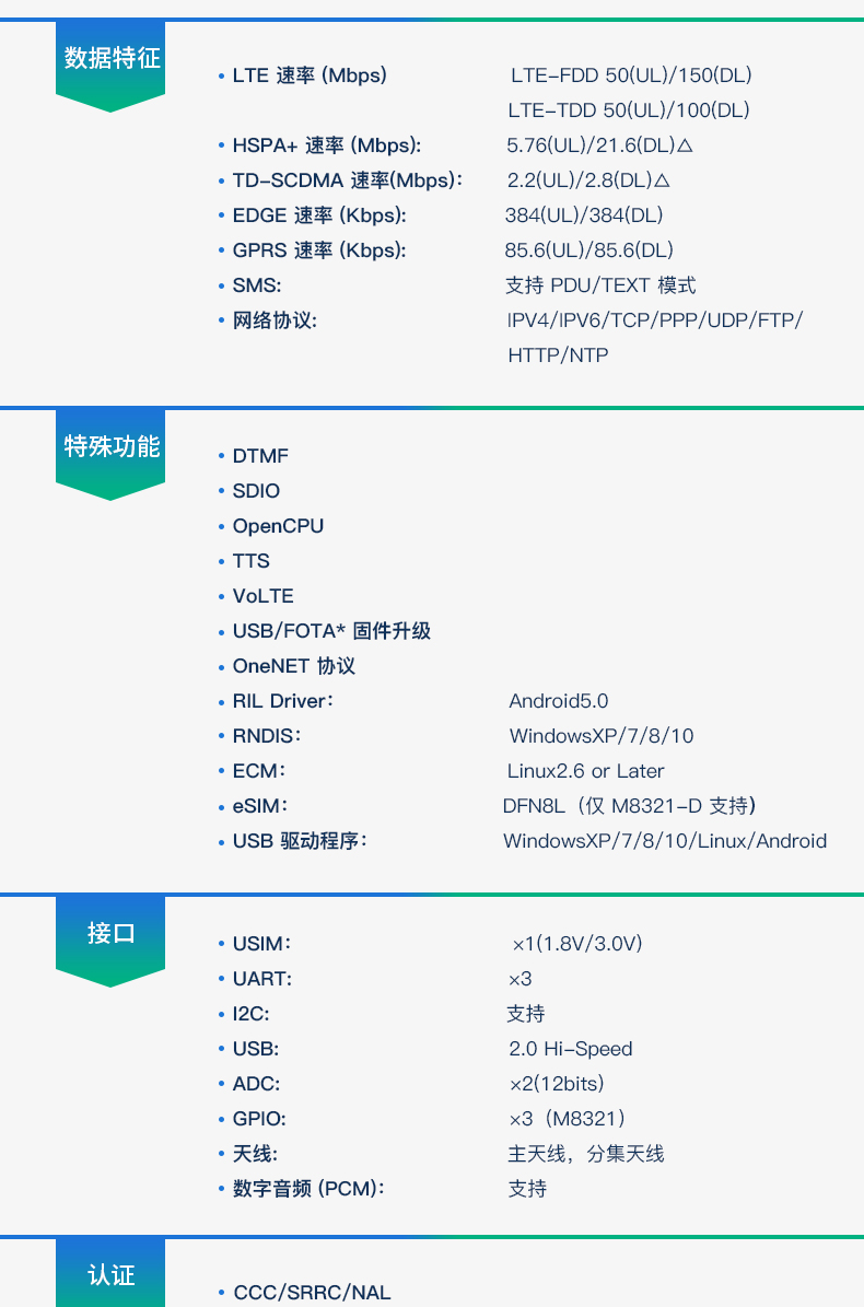 中国移动OneMO LTE全网通物联网4G模块M8321-ZX297520V3