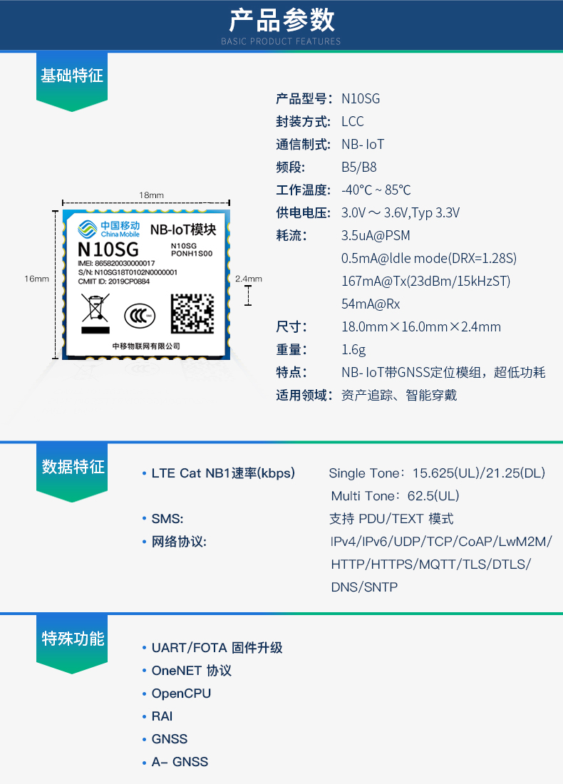 中国移动OneMO 全网通无线通信NB-IoT/GNSS模组 NB+GPS模块N10SG
