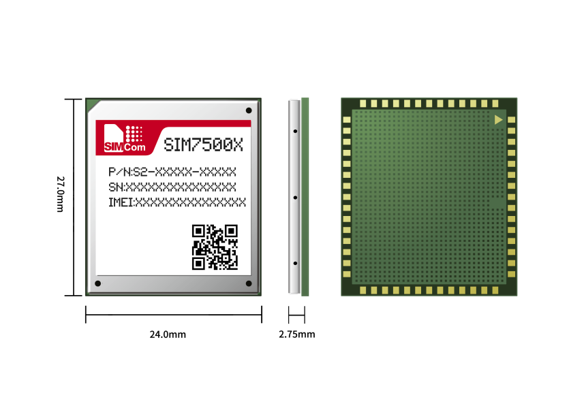 SIM7500系列采用LGA尺寸,紧凑尺寸为24mm * 27mm,非常适合紧凑型产品设计。